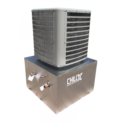 ChillX Vertical Chillers are custom designed and manufactured by expert craftsman. These chillers range in capacity from 2 to 10 tons and offer an array of options and essential features, such as: auto fill mechanism on all self-contained-chiller models with built-in reservoirs, custom designed and hand-built evaporator coils and reservoirs, and optional water distribution manifolds constructed to meet your exact needs. These distribution manifolds dramatically reduce the typical manifold footprint, can fit in a cabinet 30"W X 19"H X 12"D, and can be built to serve up to ten pieces of equipment from a single manifold!